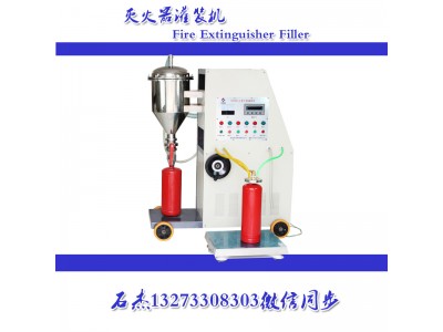 将灭火器放置到底座上,通过灌粉机构加入干粉,在灌粉机构插入到灭火器内后,驱动装置带动两侧的密封块将灭火器的顶部围住,并通过吸尘管吸收内部粉尘,避免扬尘。在密封块靠近灭火器时,灭火器将密封板向两侧顶开,顶部和底部将橡胶绳弯曲,灌粉完毕后,密封块离开灭火器,橡胶绳带动隔膜复位,两个密封板在弹簧作用下合拢,将凹槽密封,避免粉尘洒落。