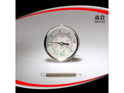 该弹簧温度计现场显示温度,弹簧固定,直观方便;安全可靠,使用寿命长,快速读数。